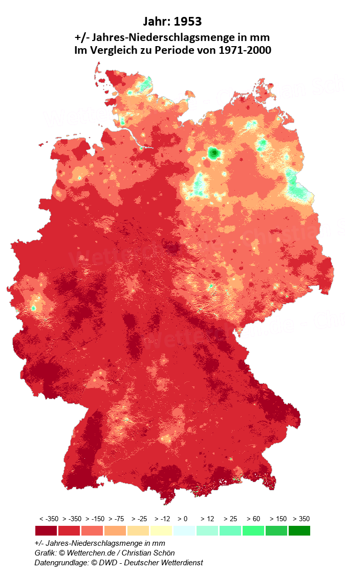 1953 - +/- Jahres-Niederschlagsmenge in mm