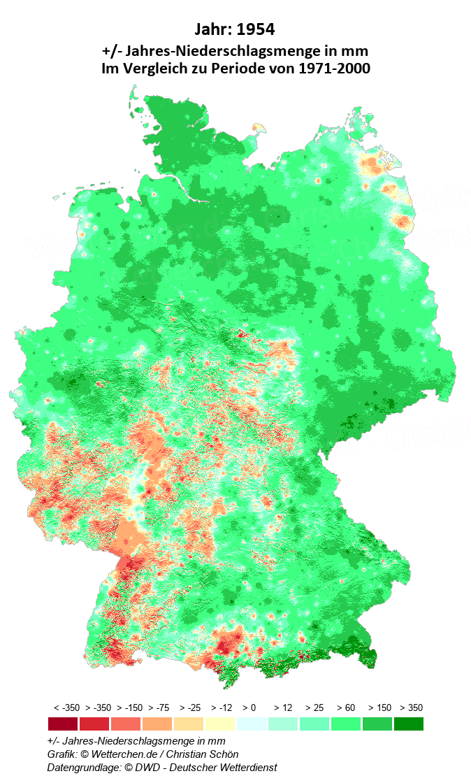 1954 - +/- Jahres-Niederschlagsmenge in mm