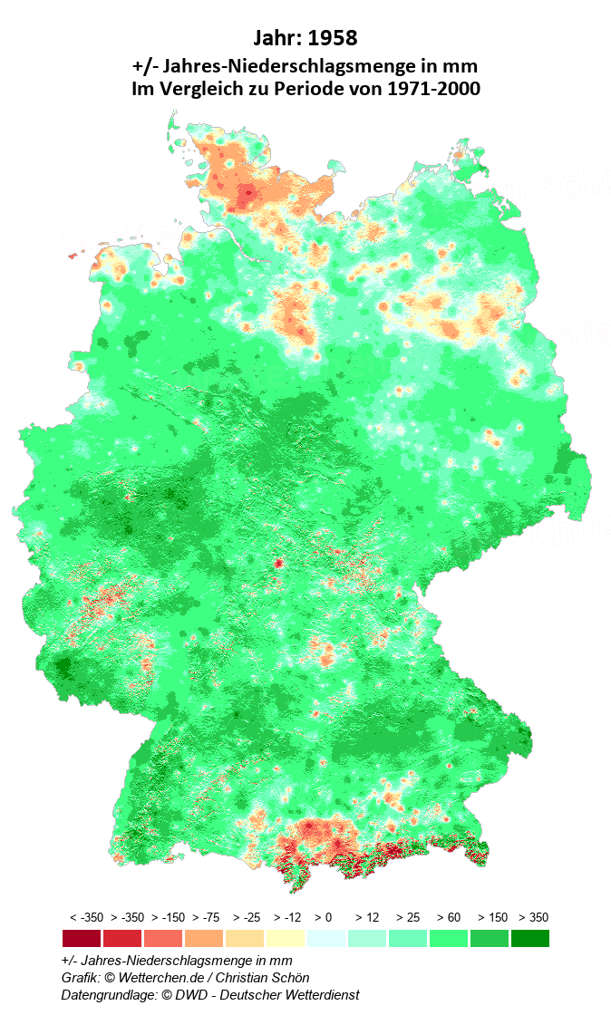 1958 - +/- Jahres-Niederschlagsmenge in mm