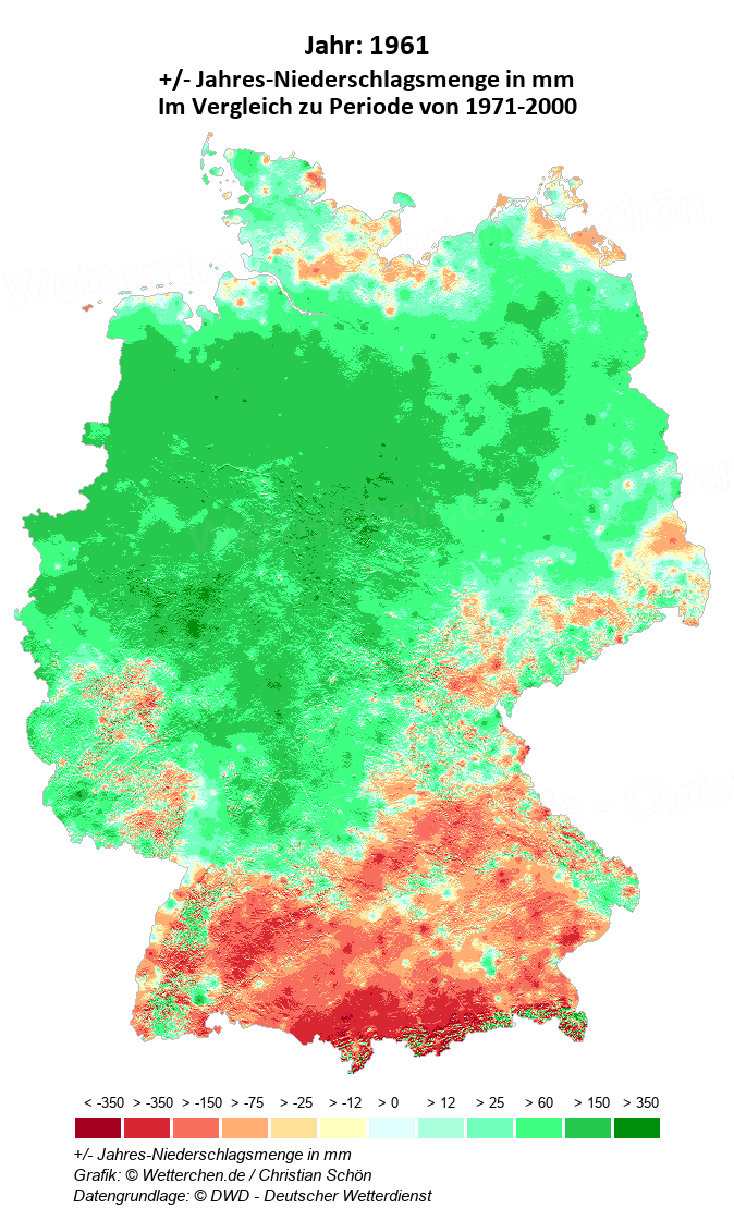 1961 - +/- Jahres-Niederschlagsmenge in mm