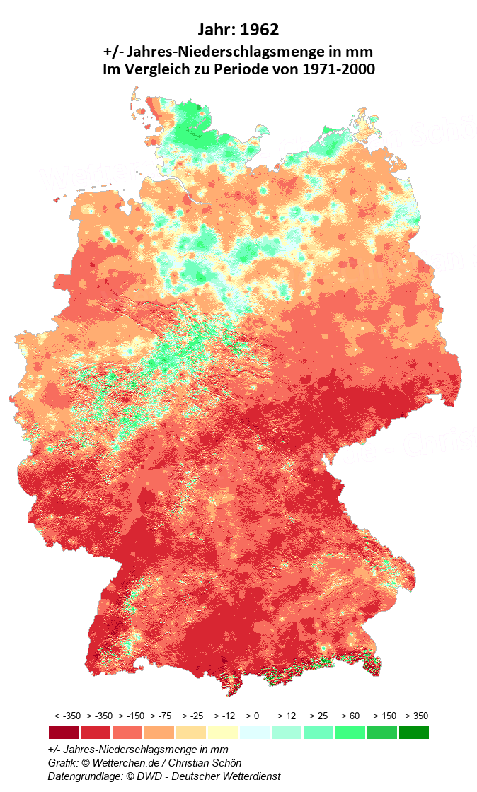 1962 - +/- Jahres-Niederschlagsmenge in mm