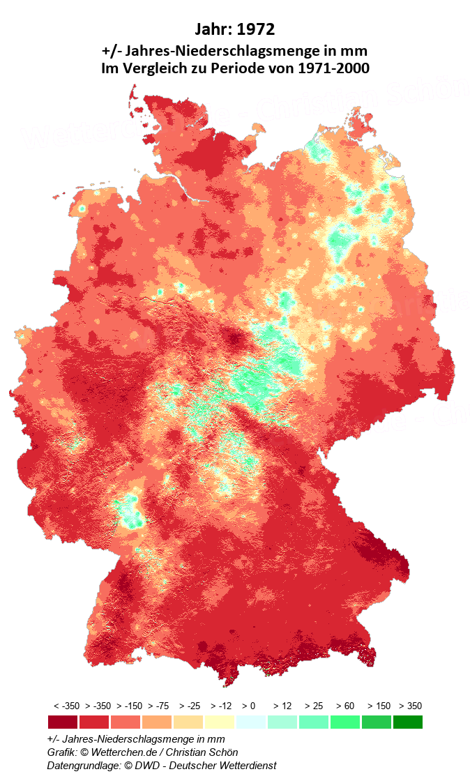 1972 - +/- Jahres-Niederschlagsmenge in mm