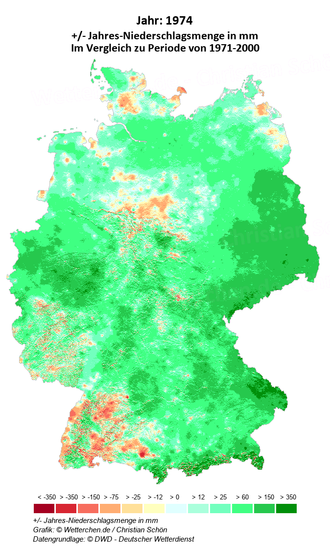 1974 - +/- Jahres-Niederschlagsmenge in mm