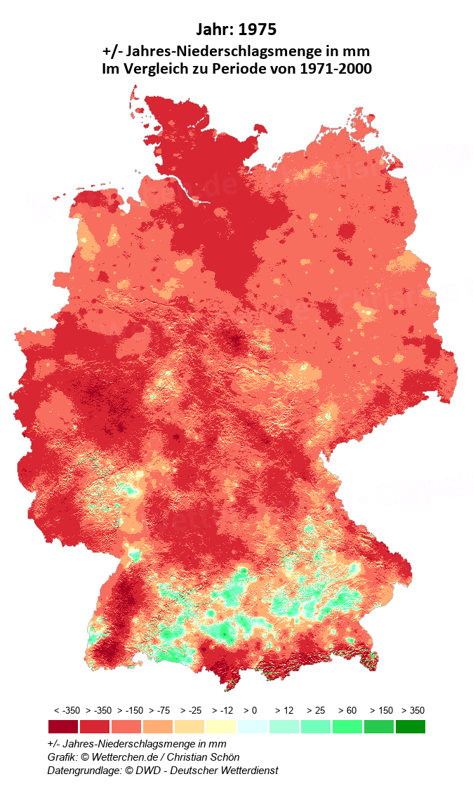 1975 - +/- Jahres-Niederschlagsmenge in mm