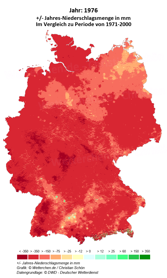 1976 - +/- Jahres-Niederschlagsmenge in mm