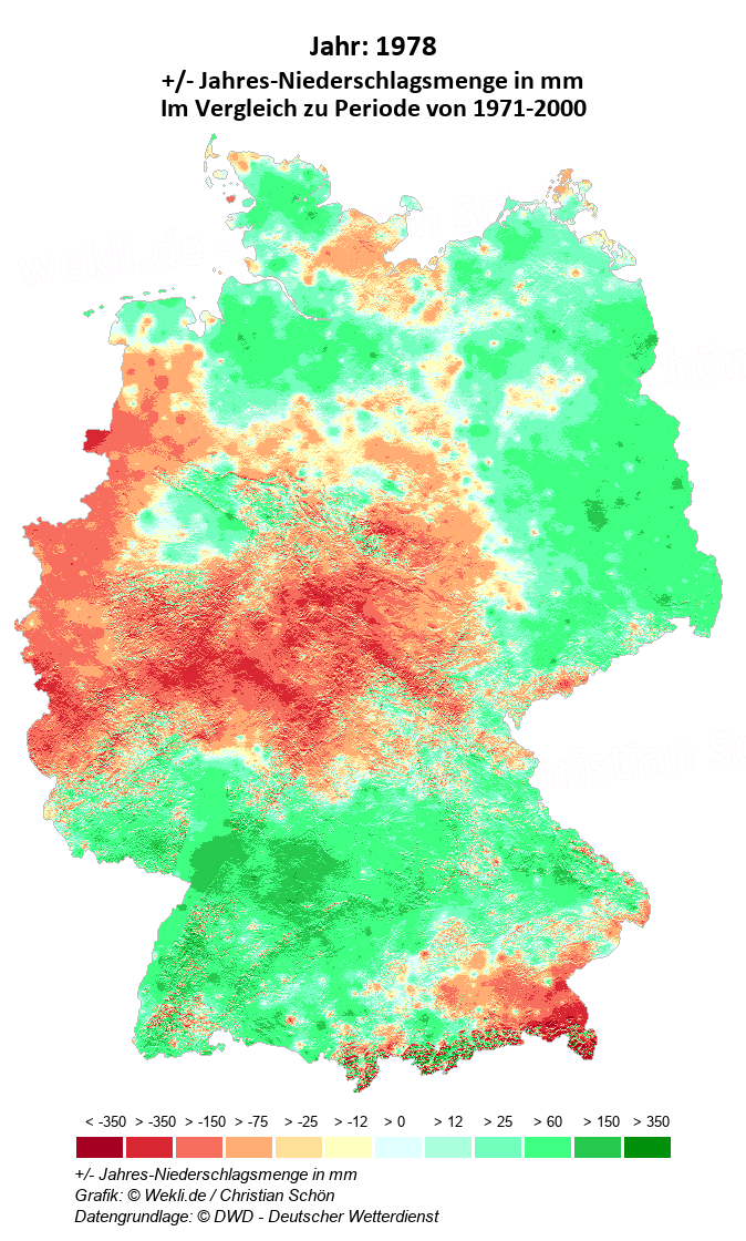 1978 - +/- Jahres-Niederschlagsmenge in mm