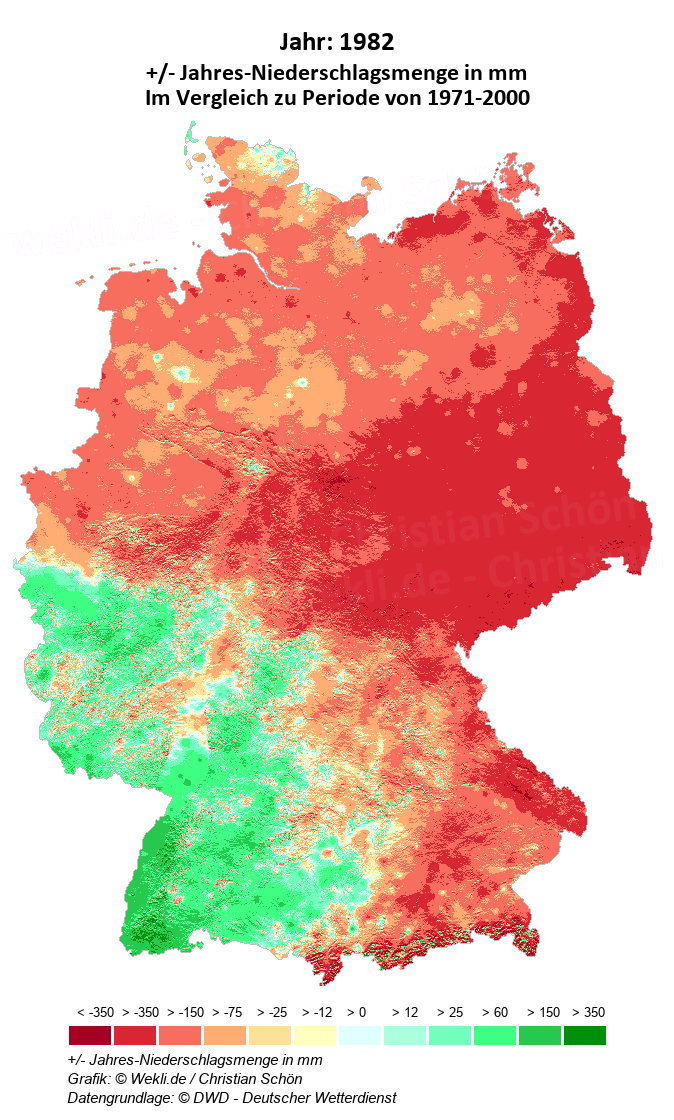1982 - +/- Jahres-Niederschlagsmenge in mm