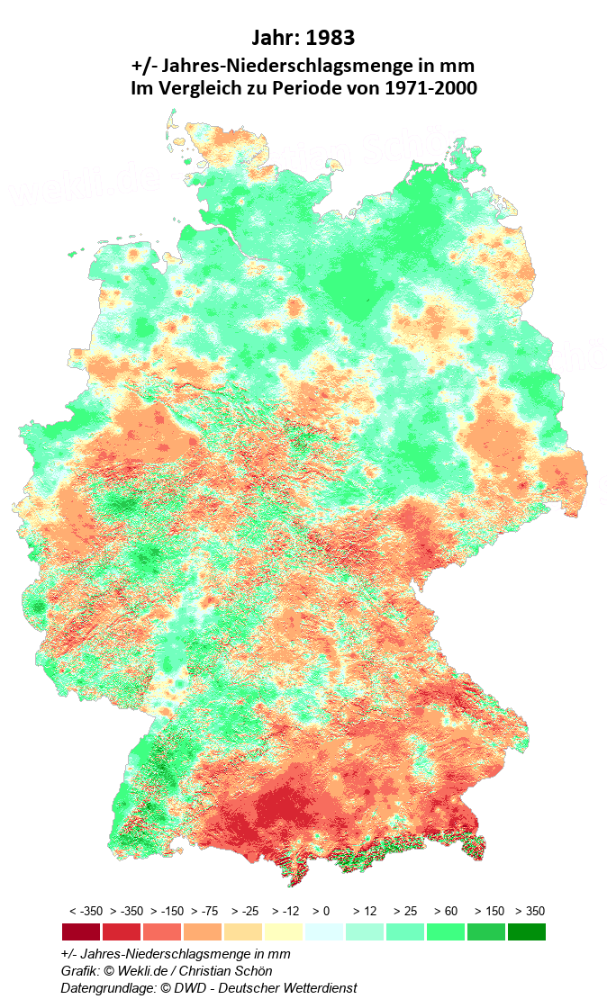 1983 - +/- Jahres-Niederschlagsmenge in mm