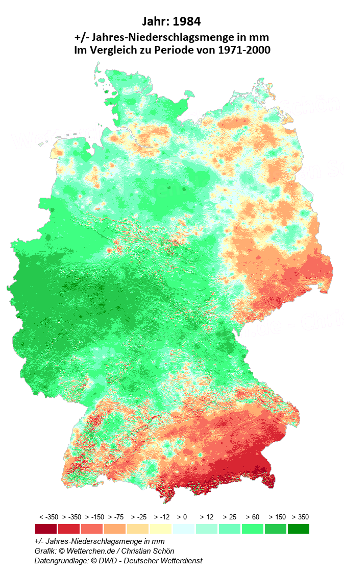 1984 - +/- Jahres-Niederschlagsmenge in mm