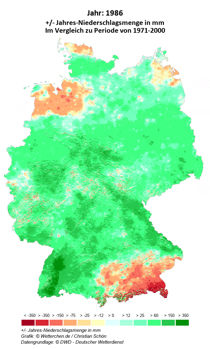 1986 - +/- Jahres-Niederschlagsmenge in mm