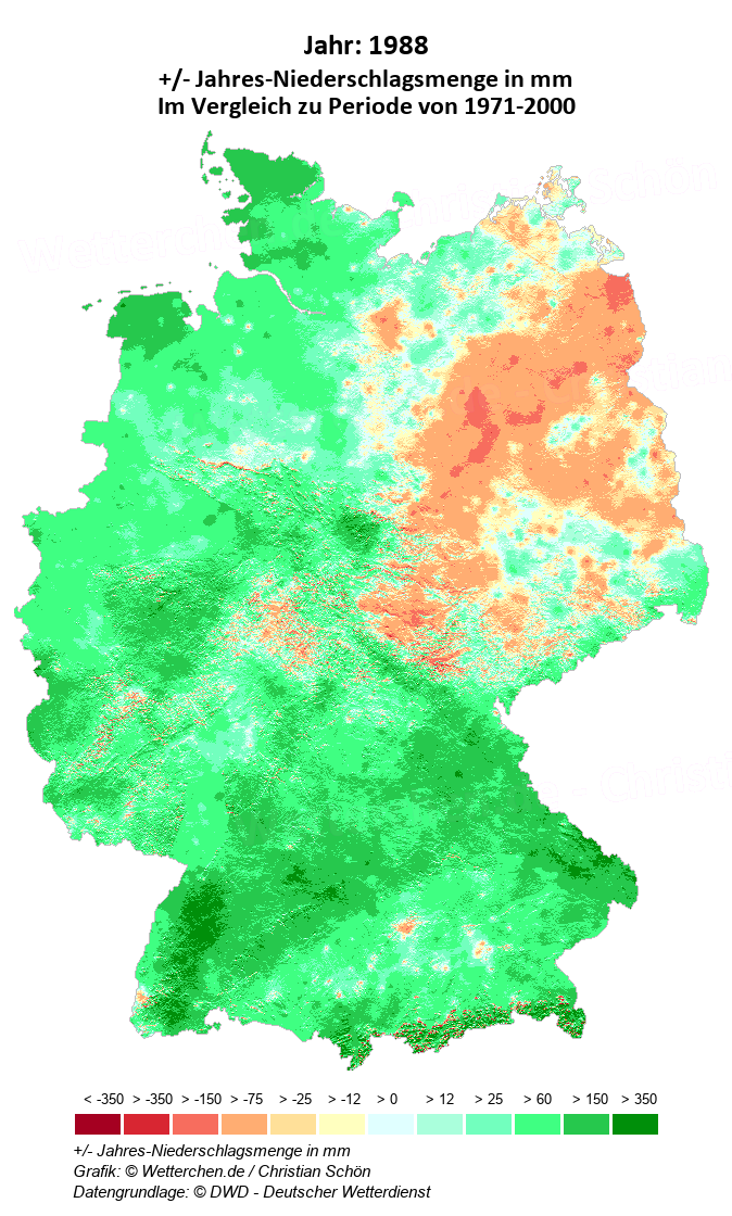 1988 - +/- Jahres-Niederschlagsmenge in mm