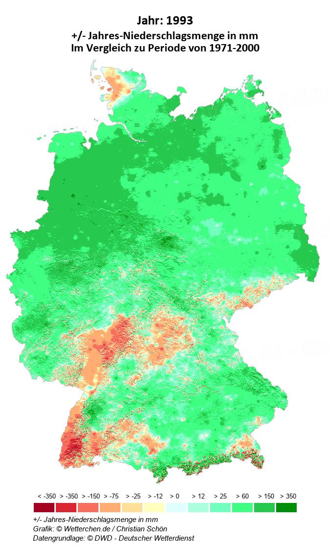 1993 - +/- Jahres-Niederschlagsmenge in mm
