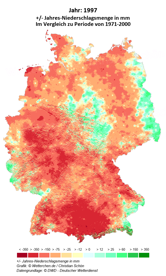 1997 - +/- Jahres-Niederschlagsmenge in mm