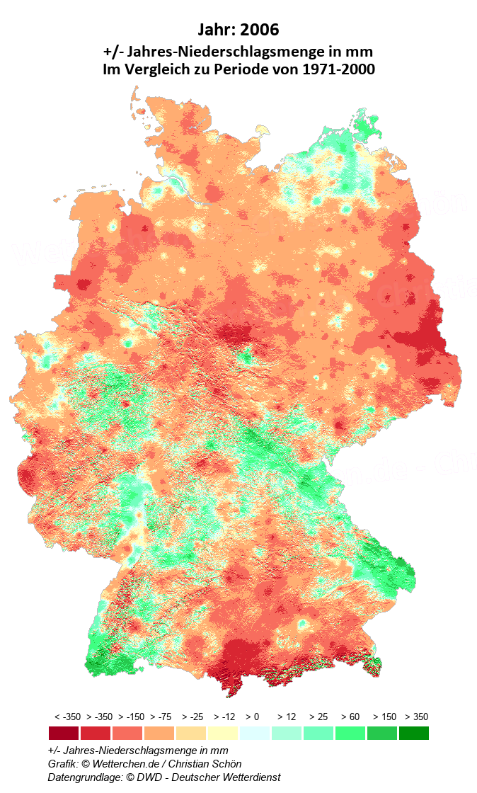 2006 - +/- Jahres-Niederschlagsmenge in mm