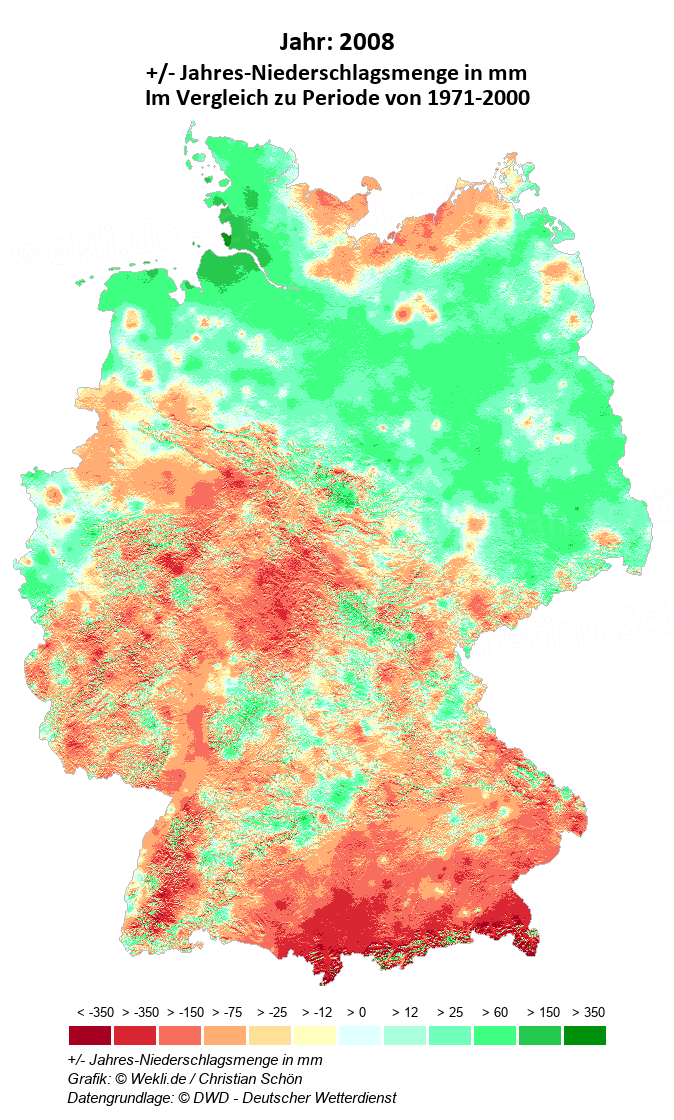 2008 - +/- Jahres-Niederschlagsmenge in mm