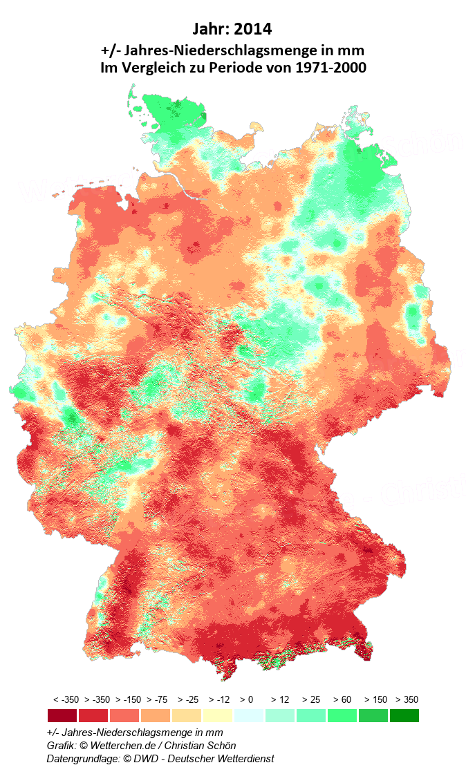 2014 - +/- Jahres-Niederschlagsmenge in mm