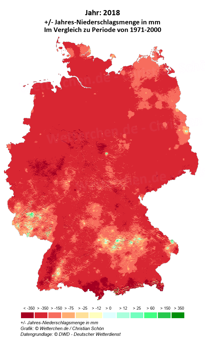2018 - +/- Jahres-Niederschlagsmenge in mm