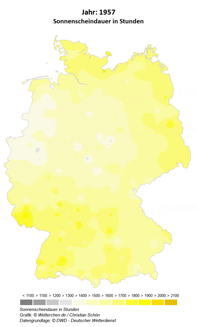 1957 - Sonnenscheindauer in Stunden