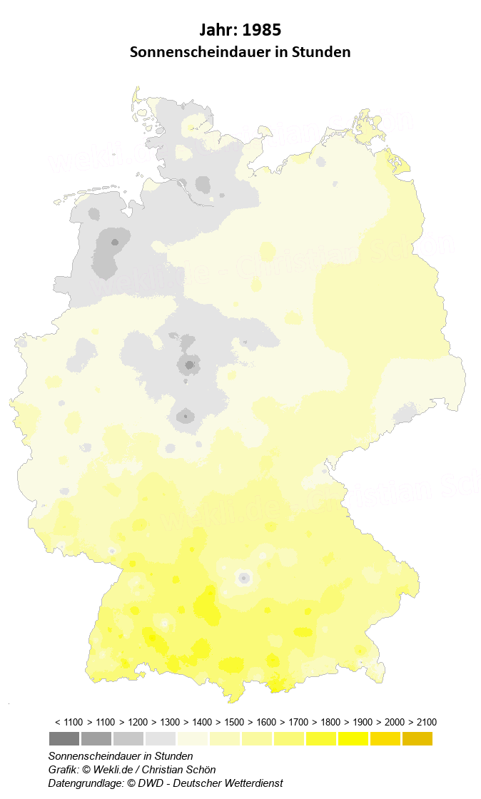 1985 - Sonnenscheindauer in Stunden
