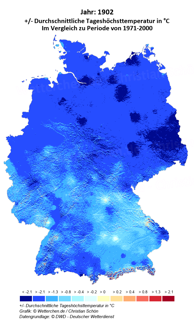 1902 - +/- Durchschnittliche Tageshöchsttemperatur in °C