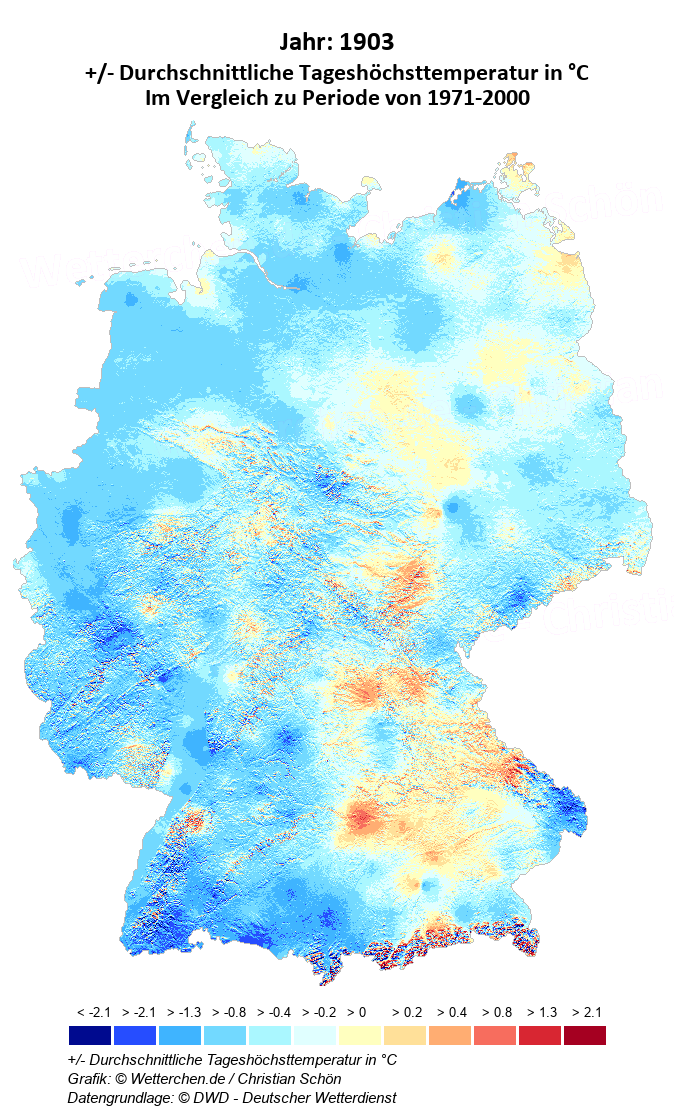 1903 - +/- Durchschnittliche Tageshöchsttemperatur in °C