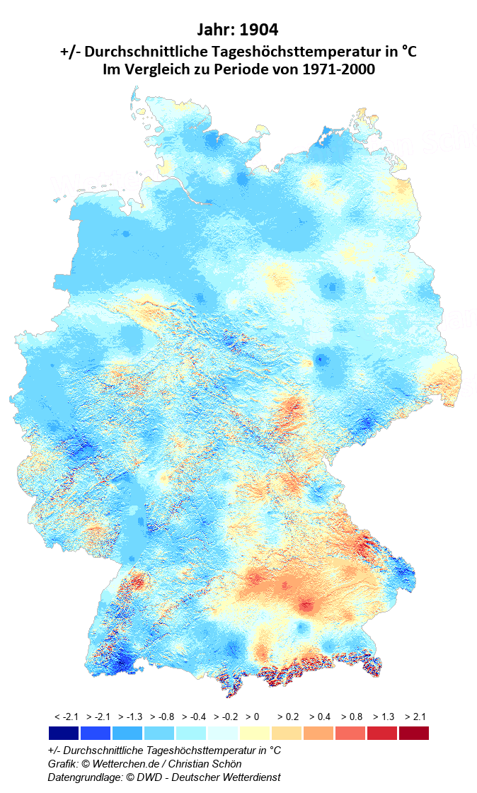 1904 - +/- Durchschnittliche Tageshöchsttemperatur in °C