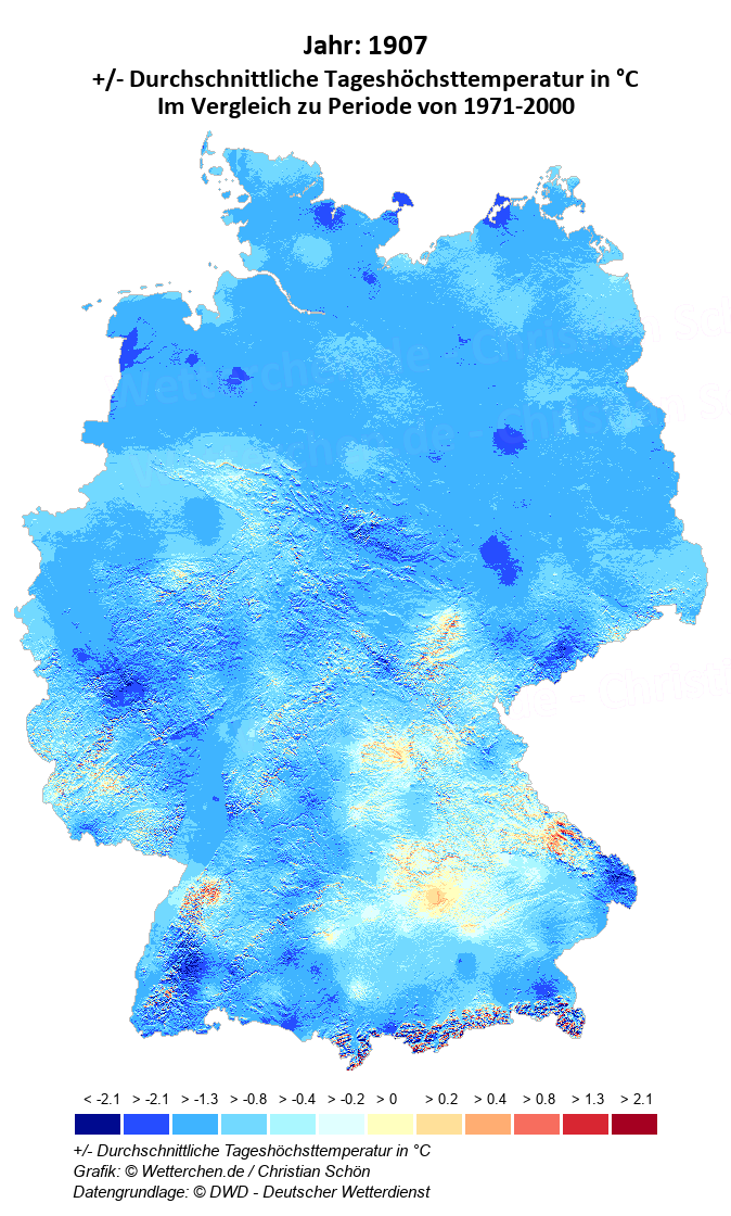 1907 - +/- Durchschnittliche Tageshöchsttemperatur in °C