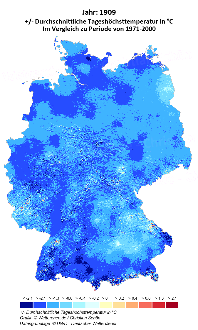 1909 - +/- Durchschnittliche Tageshöchsttemperatur in °C