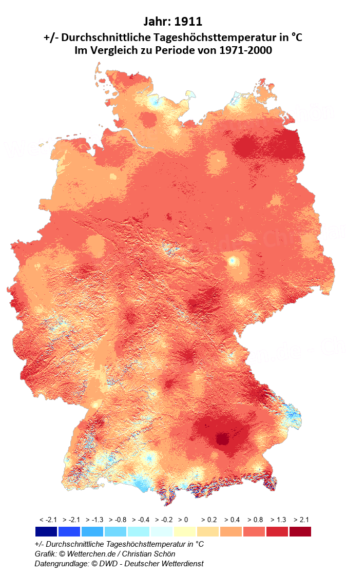 1911 - +/- Durchschnittliche Tageshöchsttemperatur in °C