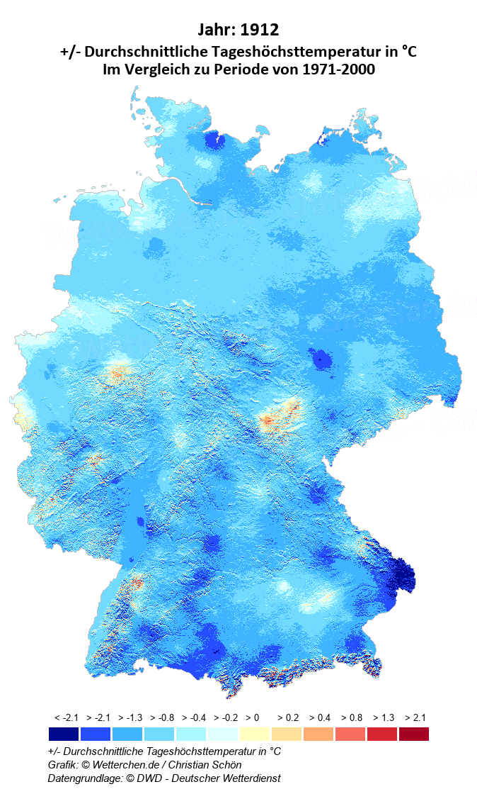 1912 - +/- Durchschnittliche Tageshöchsttemperatur in °C