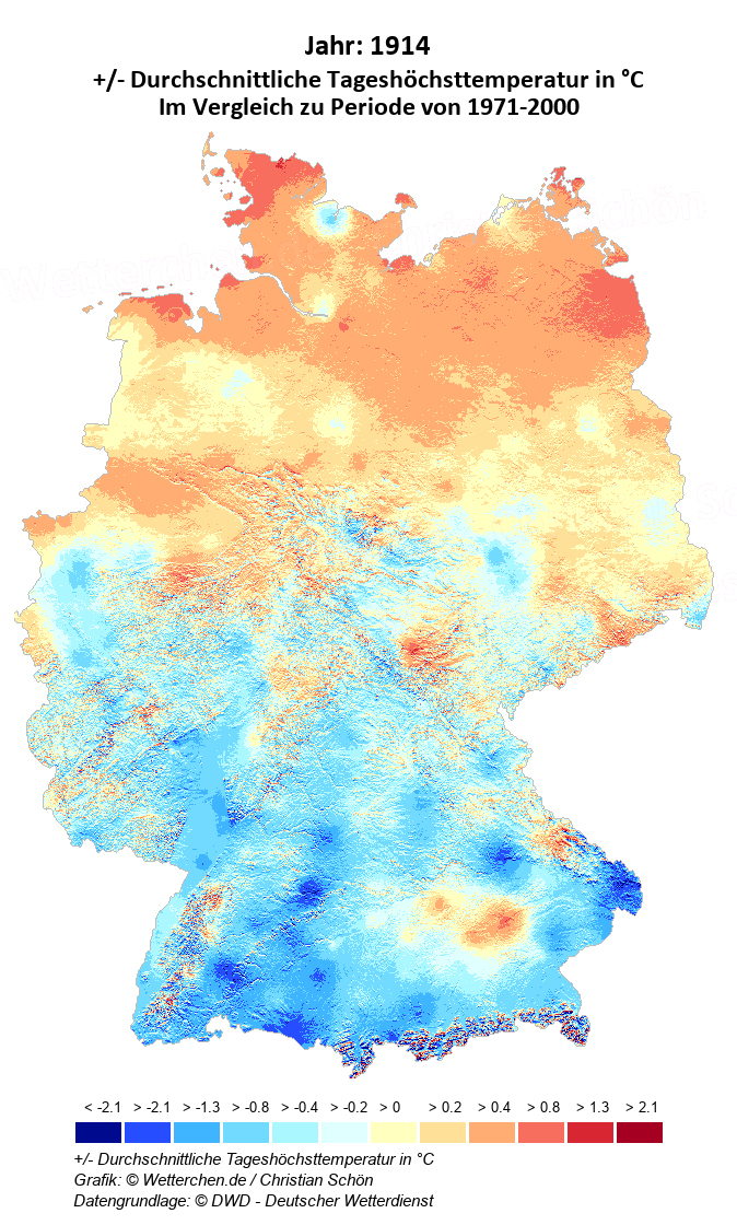 1914 - +/- Durchschnittliche Tageshöchsttemperatur in °C