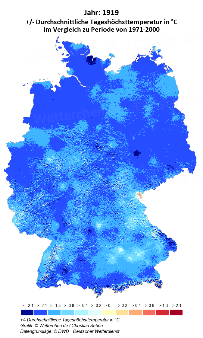 1919 - +/- Durchschnittliche Tageshöchsttemperatur in °C