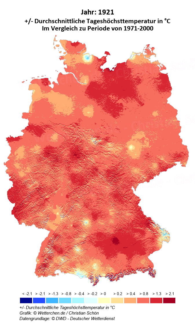 1921 - +/- Durchschnittliche Tageshöchsttemperatur in °C