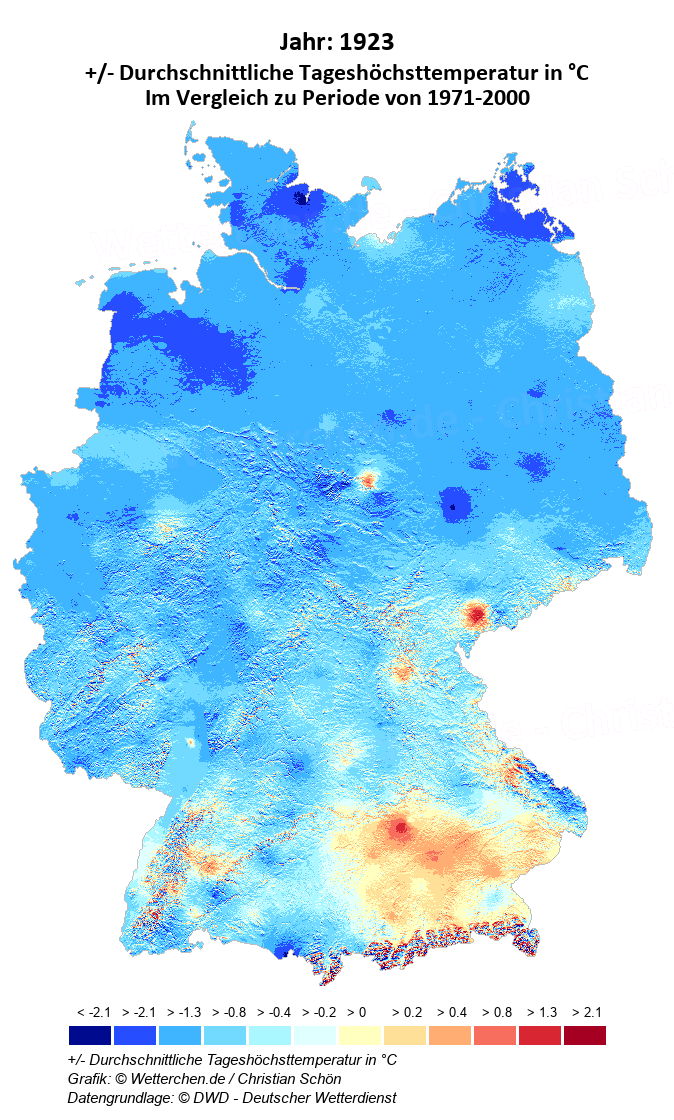 1923 - +/- Durchschnittliche Tageshöchsttemperatur in °C