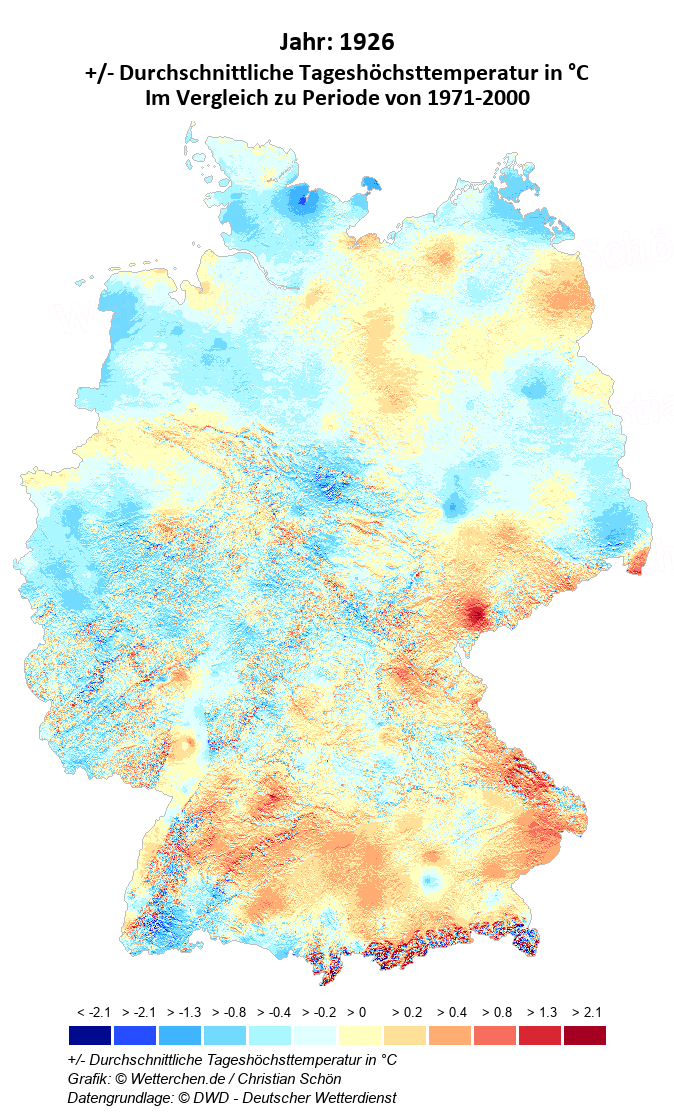 1926 - +/- Durchschnittliche Tageshöchsttemperatur in °C