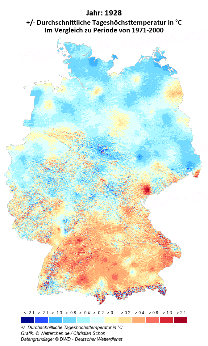 1928 - +/- Durchschnittliche Tageshöchsttemperatur in °C