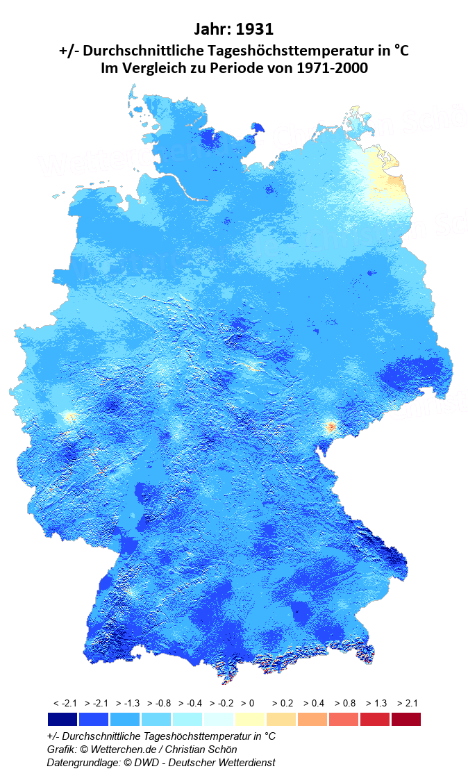 1931 - +/- Durchschnittliche Tageshöchsttemperatur in °C