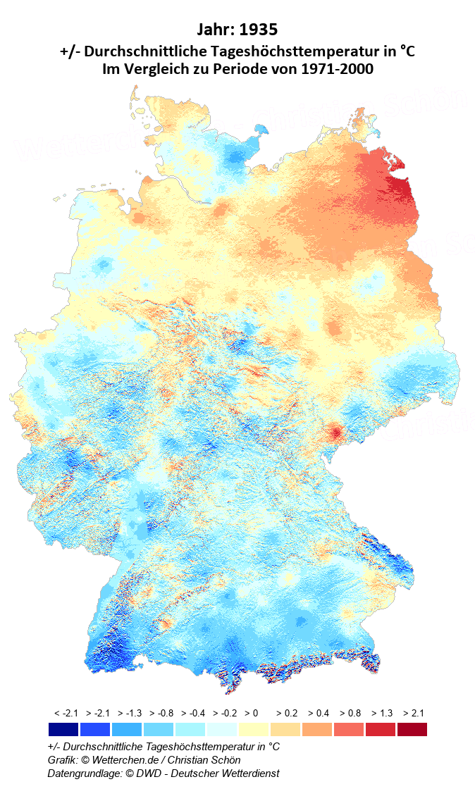 1935 - +/- Durchschnittliche Tageshöchsttemperatur in °C