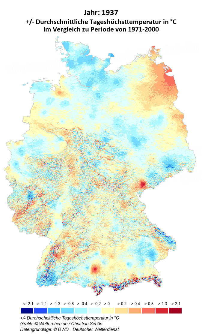 1937 - +/- Durchschnittliche Tageshöchsttemperatur in °C