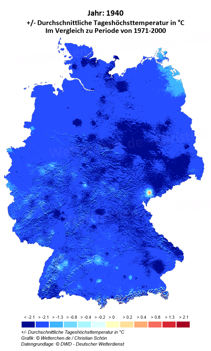 1940 - +/- Durchschnittliche Tageshöchsttemperatur in °C