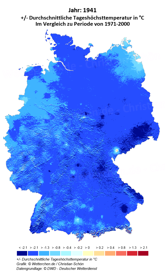 1941 - +/- Durchschnittliche Tageshöchsttemperatur in °C