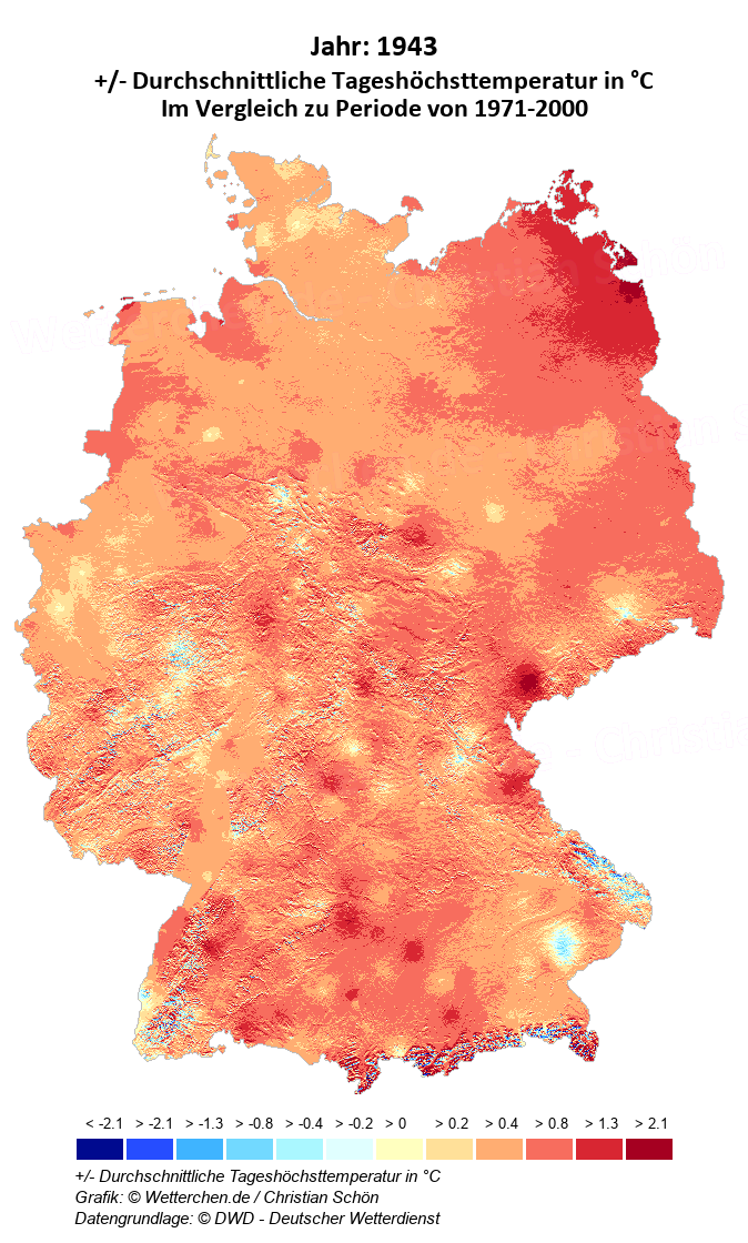 1943 - +/- Durchschnittliche Tageshöchsttemperatur in °C