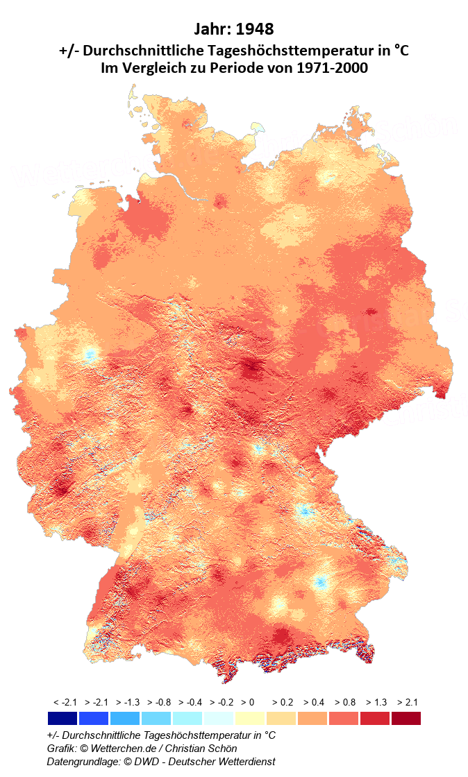 1948 - +/- Durchschnittliche Tageshöchsttemperatur in °C