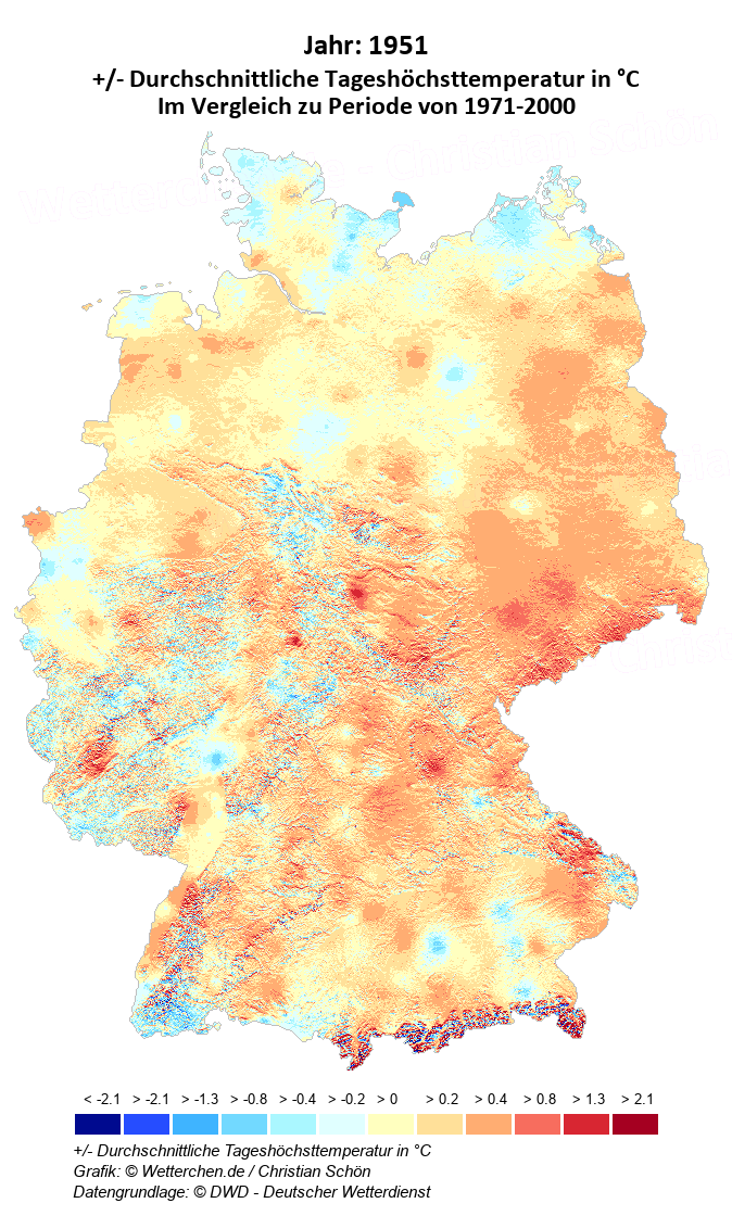 1951 - +/- Durchschnittliche Tageshöchsttemperatur in °C