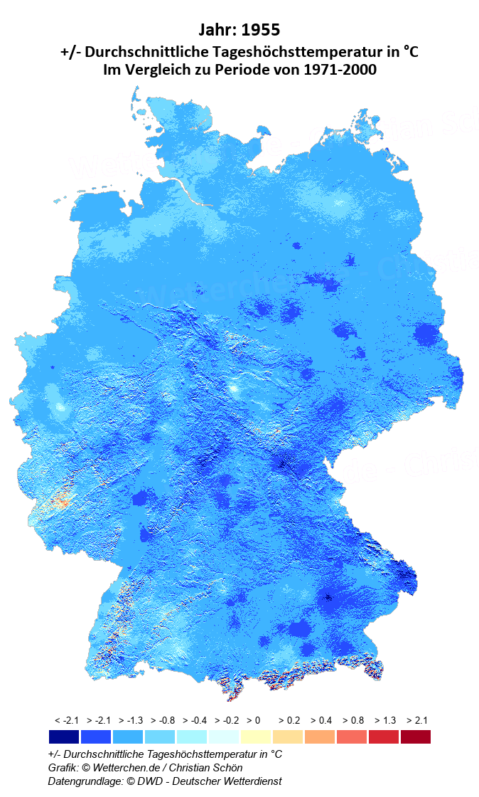 1955 - +/- Durchschnittliche Tageshöchsttemperatur in °C