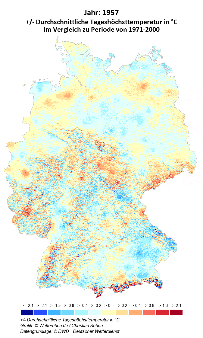 1957 - +/- Durchschnittliche Tageshöchsttemperatur in °C