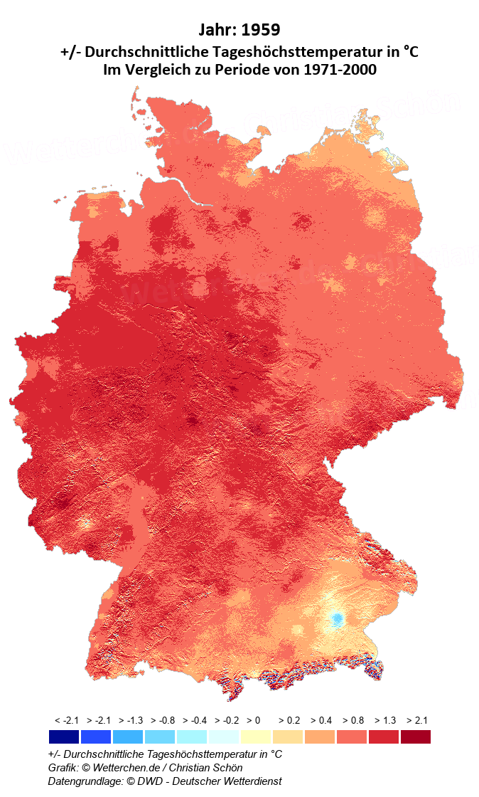 1959 - +/- Durchschnittliche Tageshöchsttemperatur in °C