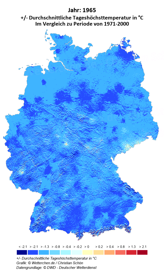 1965 - +/- Durchschnittliche Tageshöchsttemperatur in °C