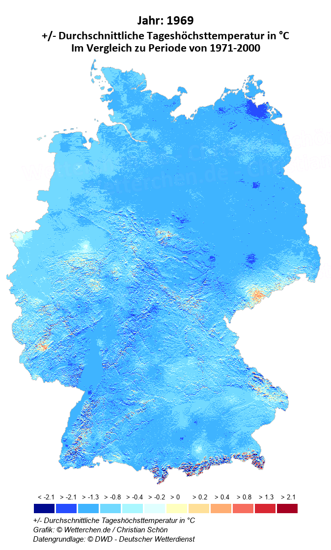 1969 - +/- Durchschnittliche Tageshöchsttemperatur in °C
