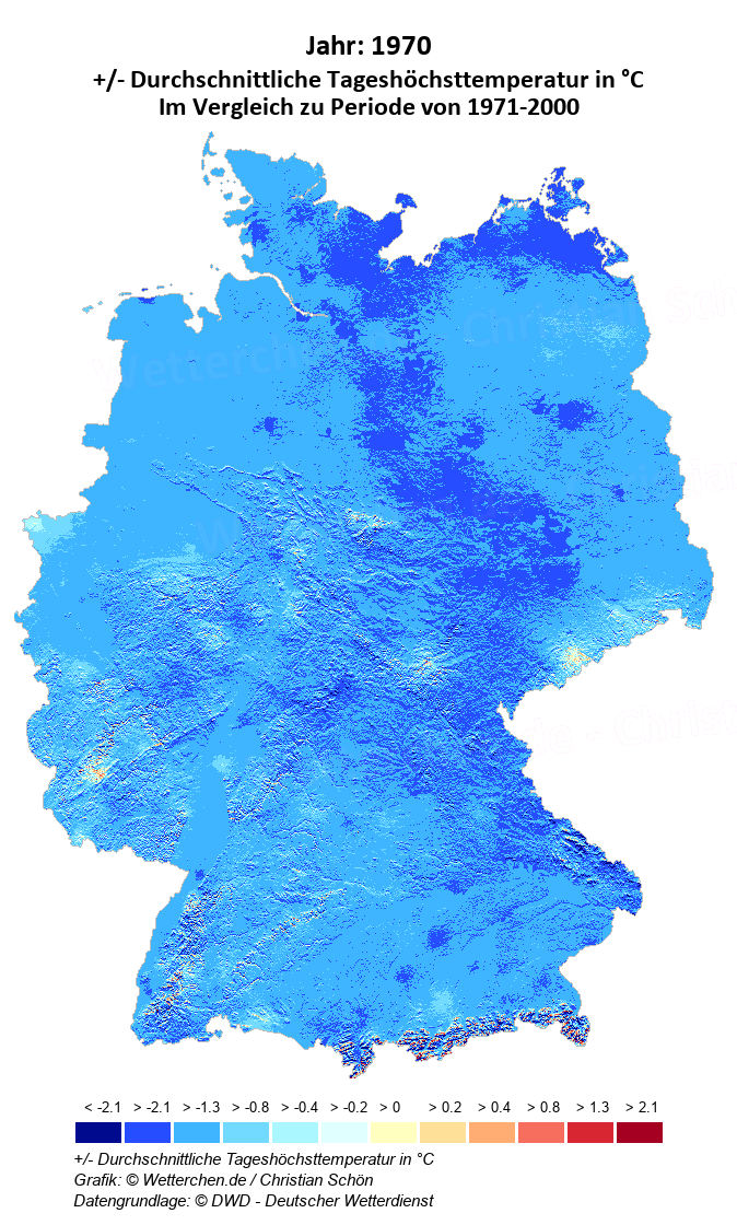 1970 - +/- Durchschnittliche Tageshöchsttemperatur in °C